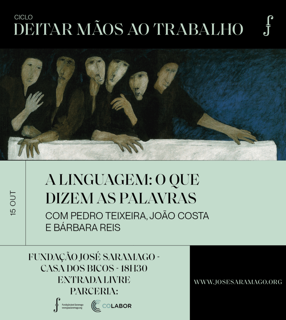 No dia 15 de outubro, terá lugar o terceiro encontro do ciclo «Deitar mãos ao trabalho», uma parceria da FJS com o CoLABOR (Laboratório Colaborativo para o Trabalho, Emprego e Proteção Social). Nesta sessão, o investigador em ciência política e tradutor Pedro Teixeira, o professor e ex-ministro da Educação João Costa e a jornalista Bárbara Reis estarão à conversa sob o mote «A linguagem: o que dizem as palavras».