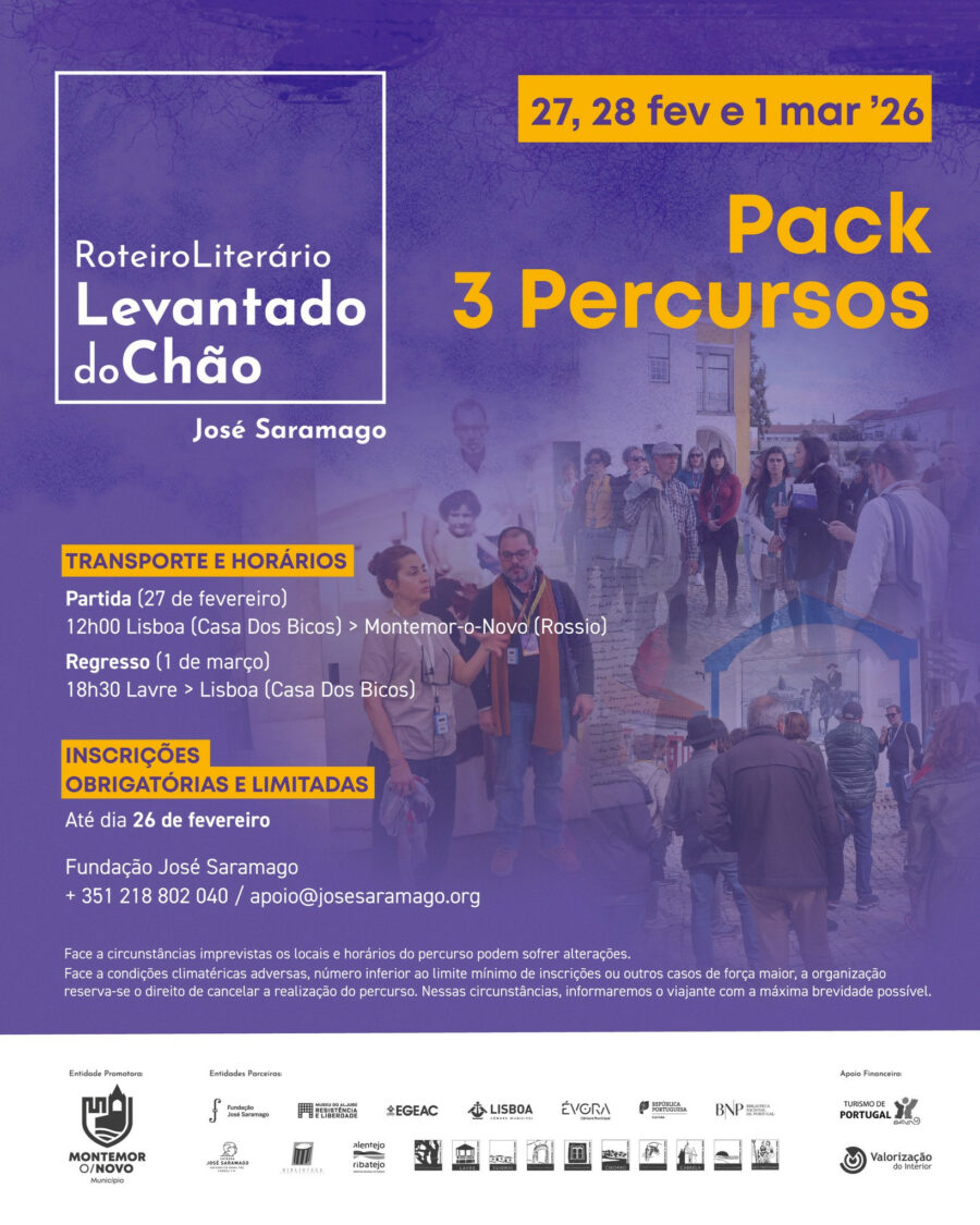 Nos dias 27, 28 de fevereiro e 1 de março será realizado o percurso completo do Roteiro Literário Levantado do Chão. Organizado pela Câmara Municipal de Montemor-o-Novo em parceria com a Fundação José Saramago.