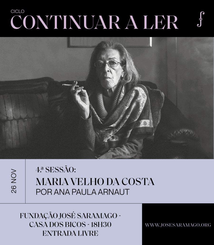 No dia 26 de novembro, às 18h30, tem lugar a 4ª e última sessão do ciclo «Continuar a Ler», com uma aula da professora Ana Paula Arnaut sobre a obra de Maria Velho da Costa.